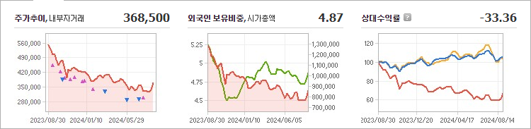 현재 LG에너지솔루션의 주가는 368,500원으로, 전일 대비 8,000원 하락했습니다. 이 회사의 주주 현황을 보면, 81.84%의 지분을 보유하고 있습니다. LG에너지솔루션은 전자 장비 및 기기 분야의 기업으로, 현재 주가는 368,500원입니다. 이 회사의 시가 총액은 90조 9,090억 원이며, 발행된 주식 수는 234,000,000주입니다. 외국인 보유 비율은 4.87%이며, 장중 거래량은 259,901주에 달했습니다. 또한, LG에너지솔루션의 매출액은 122,906억 원에 이릅니다.